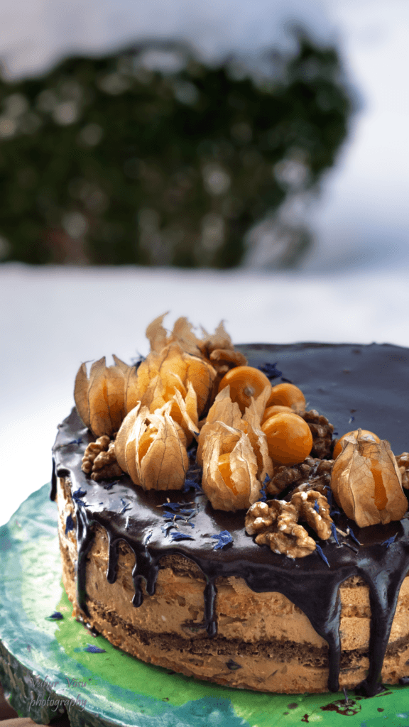 Viktoria tort, milles on rikkalikult pähkleid ja rosinaid ning tibake konjakit.