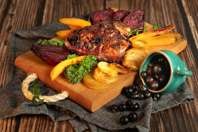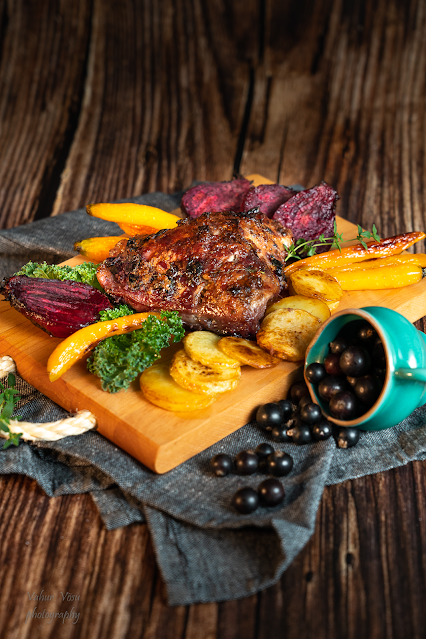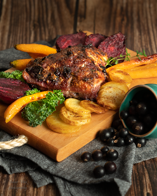 Ahjus küpsetatud broilerikintsud musta sõstra-rosmariini ja hapukoore marinaadis