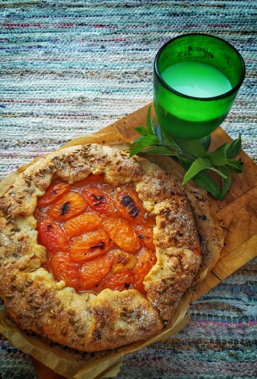 Laota aprikoosid lahtirullitud taignale. Jäta servadest vabaks ca 5 cm. Tõsta vabaks jäetud taignaservad täidise peale. Galeti keskelt jääb täidis paistma. Pane galett 15 minutiks külmkappi enne küpsetamist. Määri galeti servad lahtiklopitud munaga, ning puista servadele päevalilleseemned ja 1 sl suhkrut.