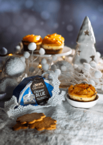 Kogus : 6 väikest kooki Koogi põhjaks: 125 g õhukesi piparkooke 50 g sulatatud võid Koogi täidiseks: 100 g maitsestamata toorjuustu (toasoe) 50 g sinihallitusjuustu