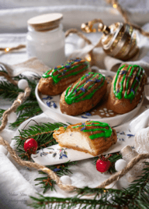 Õhulised ja piparkoogimaitselised ekleerid. Koostisosad taignale: 250 ml vett 3 g soola 125 g võid 130 g jahu muna ca 180 g ( ca 3