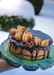 Mõnus vürtsikas kook toorjuustutäidise ja soolakaramellikastmega. Eriliselt mõnusa pehme konsitentsi annab koogile kõrvitsapüree. Vaja läheb: Taignale: 170 g nisujahu 0,5 tl soola 1 tl soodat