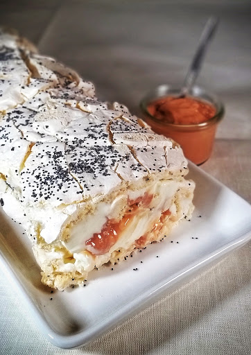 Magus ja mõnusa-kerge hapuka rabarberi noodiga beseerull. Rullile raputatud mooniseemned annavad huvitava välimuse ja mõnusa krõmpsuva konsistentsi.