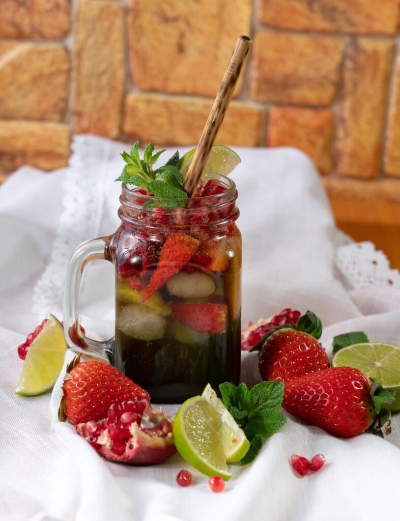 Värskendav suvine jook granaatõunast ja piparmündist. Mõnus jahutus kuuma suvepäeva. Kogus: 2-le Koostisosad: 200 ml granaatõuna nektarit 200 ml gaseeritud vett 50 ml piparmündisiirupit maasikatükke apelsinitükke vaarikaid granaatõunaseemneid piparmündilehti laimisektoreid jääd Sega omavahel granaatõuna nektar ja piparmündisiirup. Pane suurtesse klaasidesse (mahuga umbes 400 ml) jää, maasikatükid, apelsinitükid, vaarikad ja granaatõunaseemned. Lisa granaatõuna nektari ja piparmündisiirupi […]