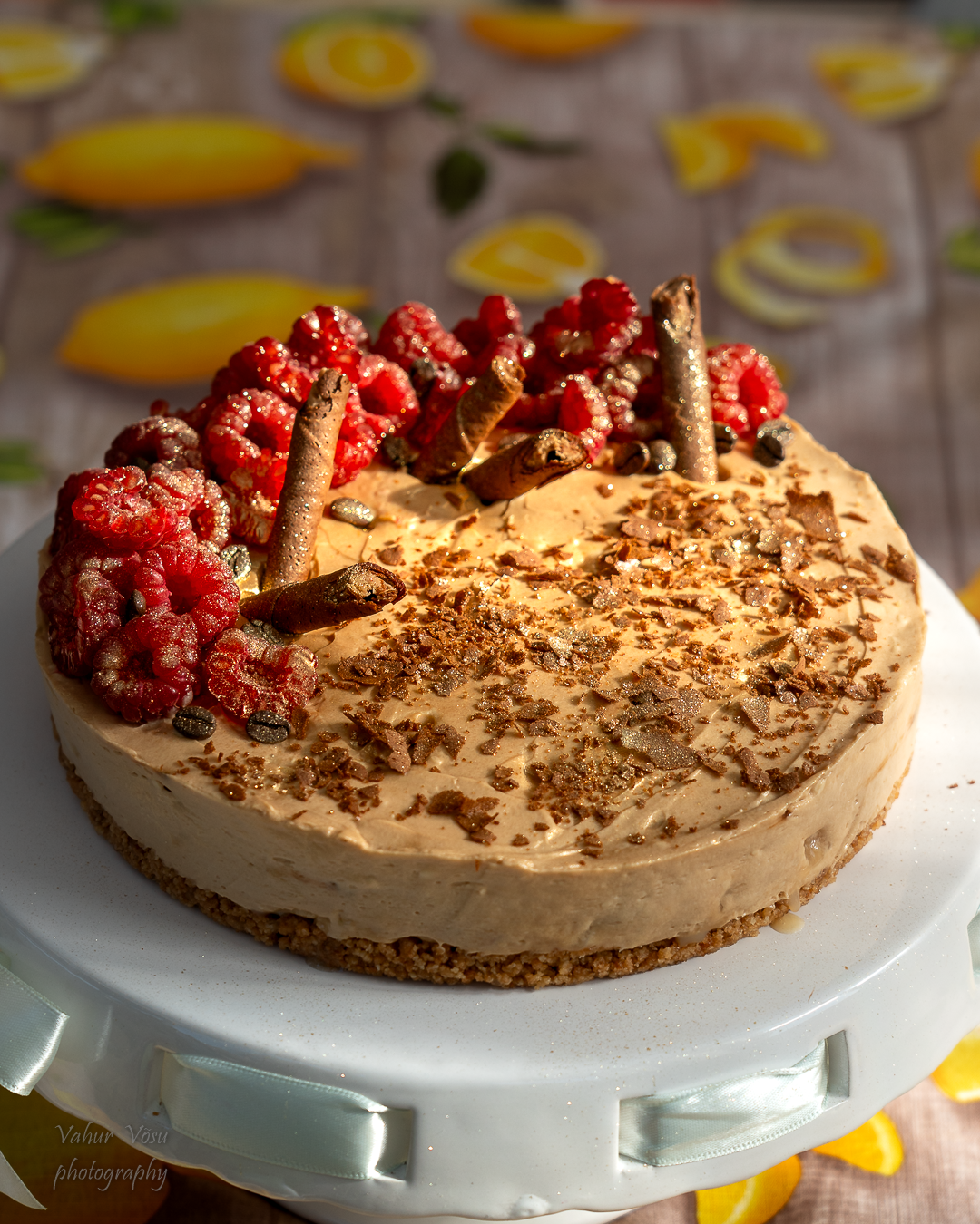 Järgmisel päeval võta kook külmkapist ning kaunista vaarikate ja kohviubadega.