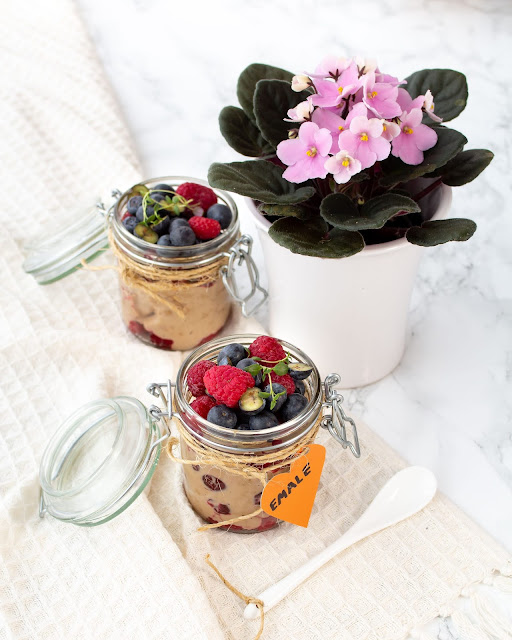 Mõnusalt marjane ja suus sulav kombinatsioon krõbedatest kaeraküpsistest ja karamellipudingist.