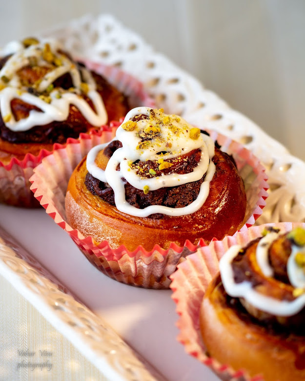 Jäta iga rulli ümber ca 1,5 cm vaba ruumi, et saiad saaksid mõnusalt kohevaks kerkida. Lase rullidel kerkida ca 30 minutit. Enne ahjupanekut määri rulle pealt munakollase- ja piimaseguga ning kata soovi korral toorjuustuglasuuri ning pistaatsiapähklitega.
