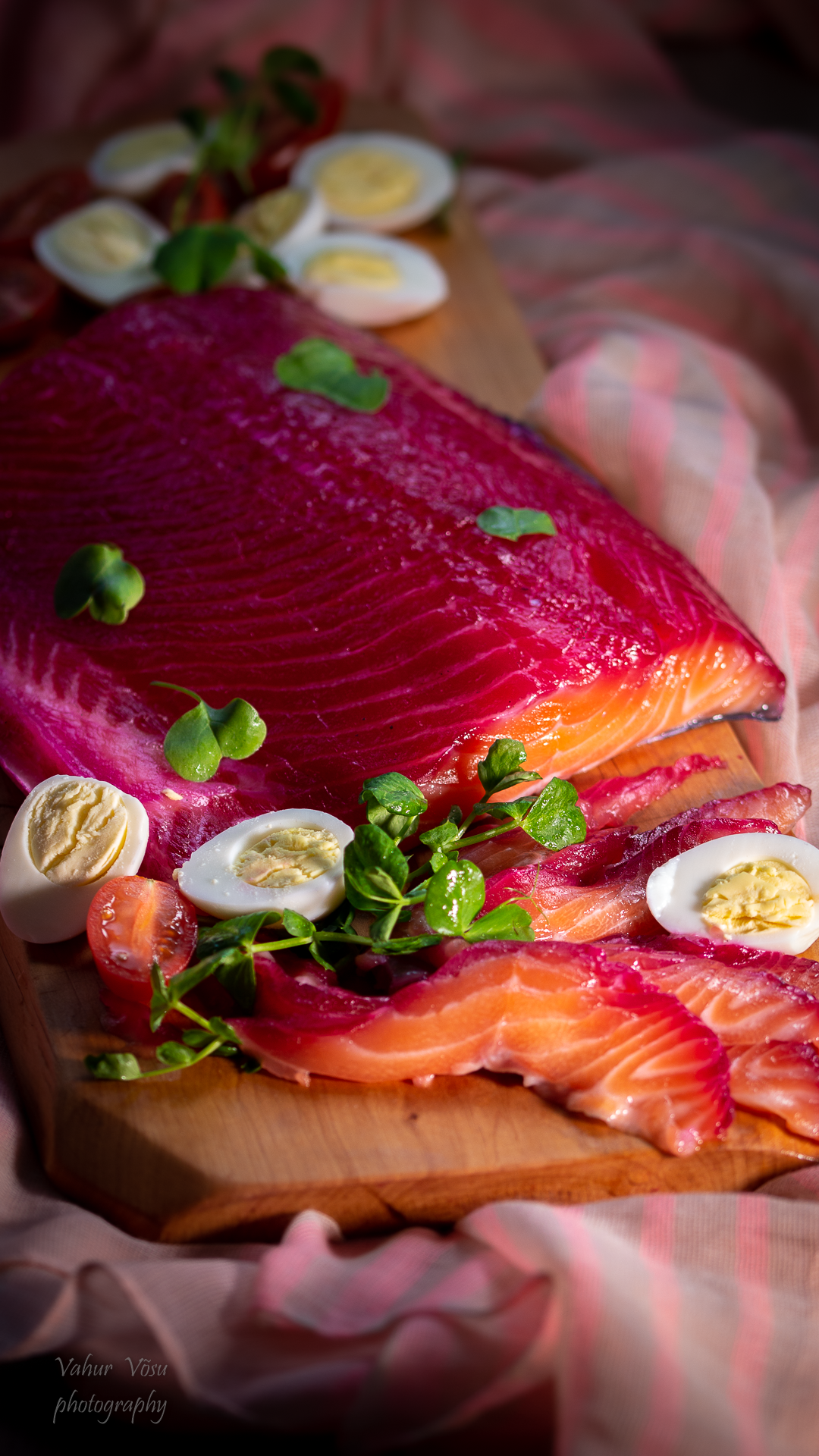 Sega kokku sool, suhkur, viin, must pipar ja peet. Võta lõhefilee ja pane see mitmekordse toidukile peale. Määri filee peale peedisegu ning mässi kala õhukindlat toidukilesse ning aseta 24 tunniks külmkappi maitsestuma.