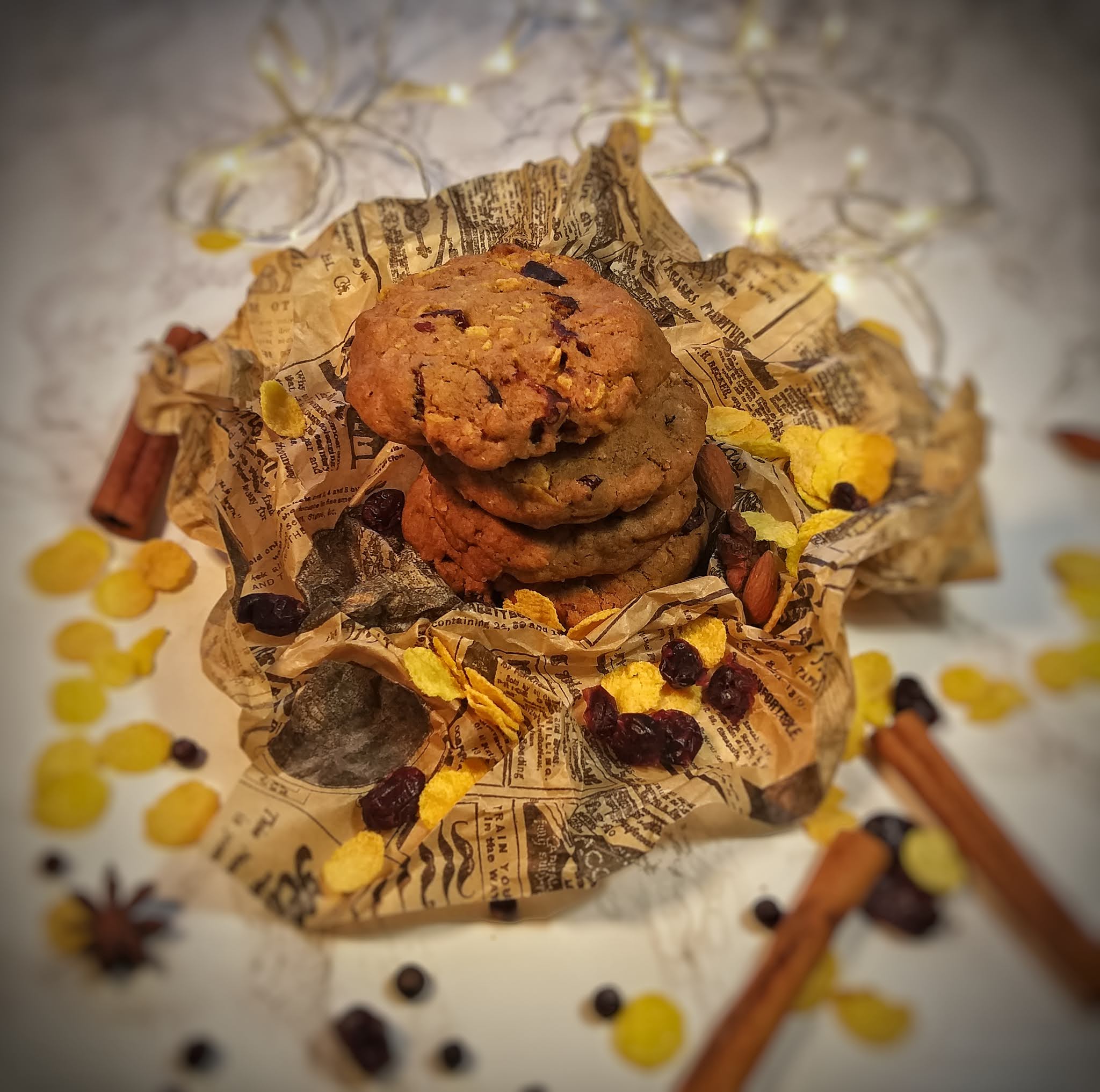Sega omavahel jahu, sool, piparkoogimaitseaine ja sooda. Lisa maisihelbed ja sega need jahuga ning suru käega peenemateks tükkideks. Lisa saadud segu vahustatud võile.