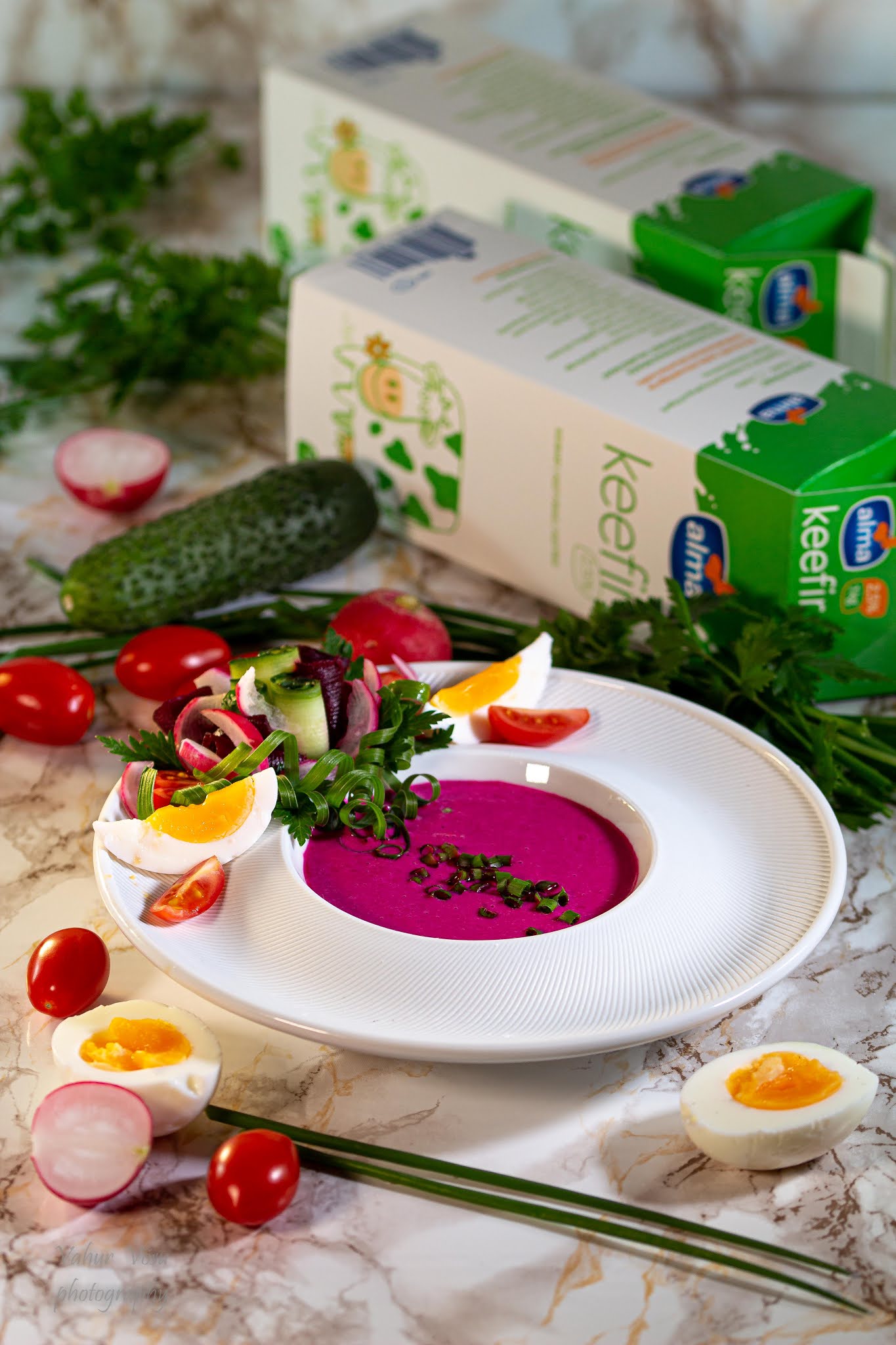 Tegin seda suppi pisut teistmoodi, kuna mulle meeldib kui köögiviljad on krõmpsud. Seetõttu tegin ma valmis peedi-keefiri püree ning serveerin seda värskelt lõigatud köögiviljadega ning keedumunaga. Aga väga hästi sobib ka kui segada kõik köögiviljad supivedelikuga.