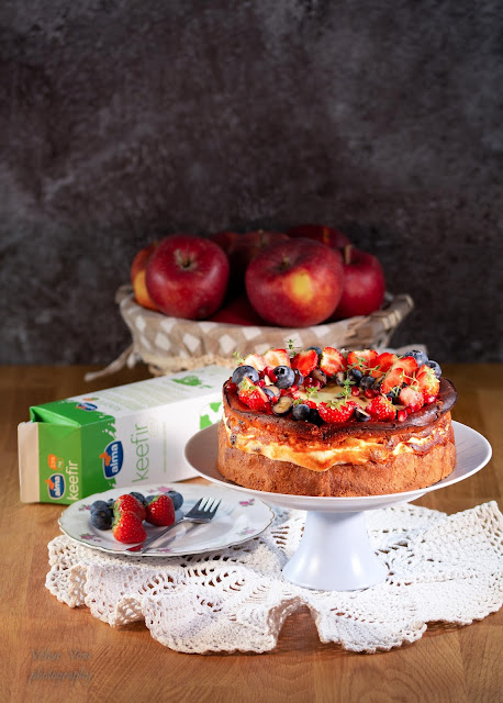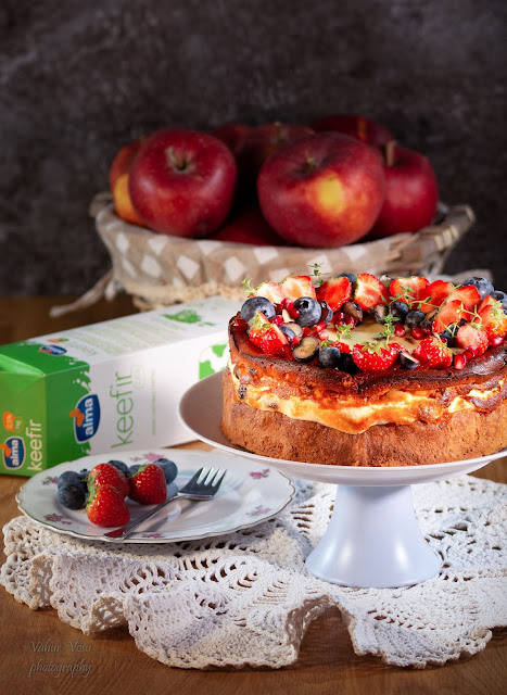 Üks mõnus kohupiimakook, mille taigen valmis keefiriga ja imelihtsalt. Kook on mahlane ja mõnusalt rosinane.