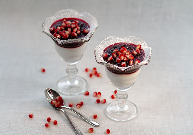 Serveerimisel kaunista magustoit soovi korral tuhksuhkru ja granaatõunaseemnetega.