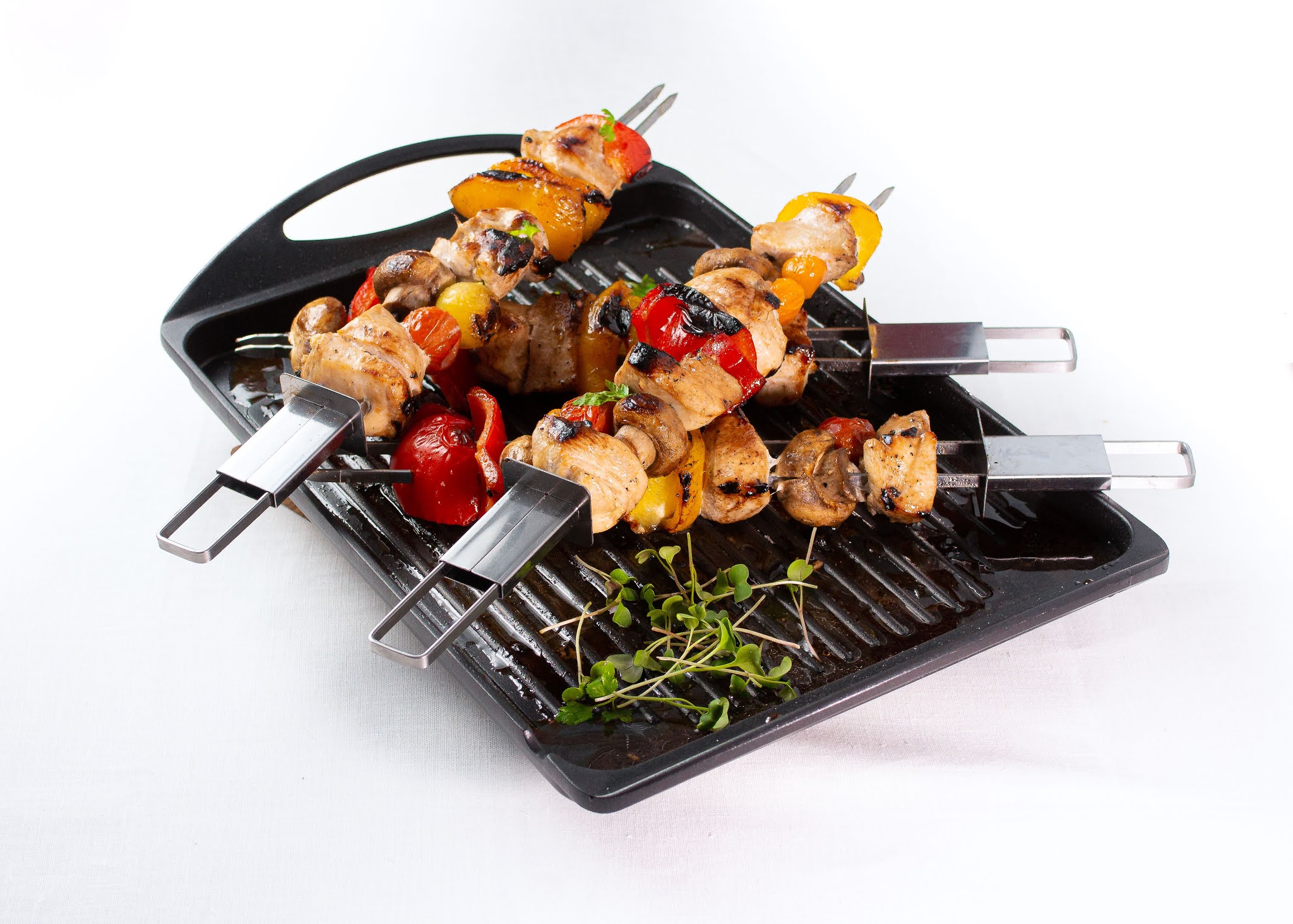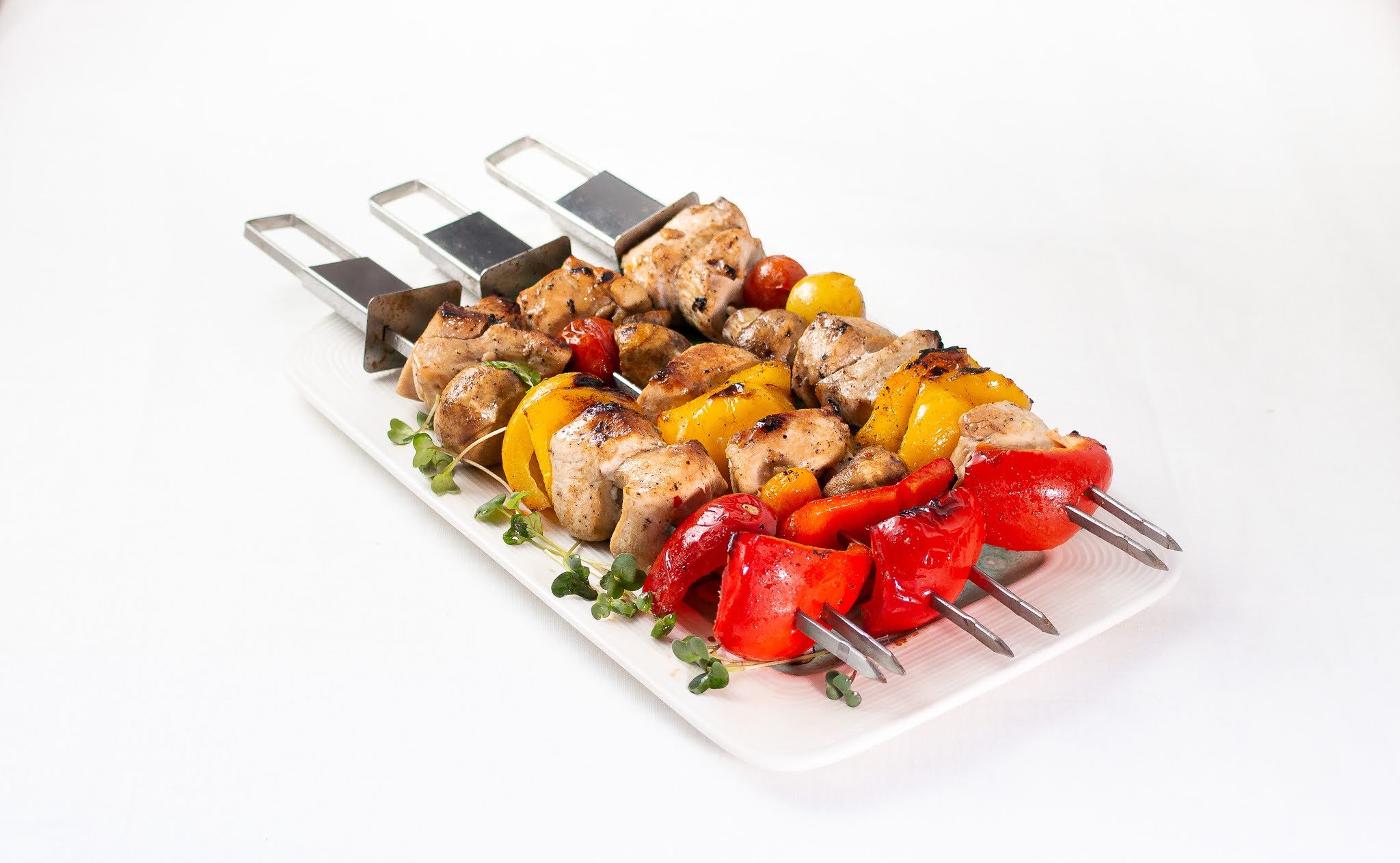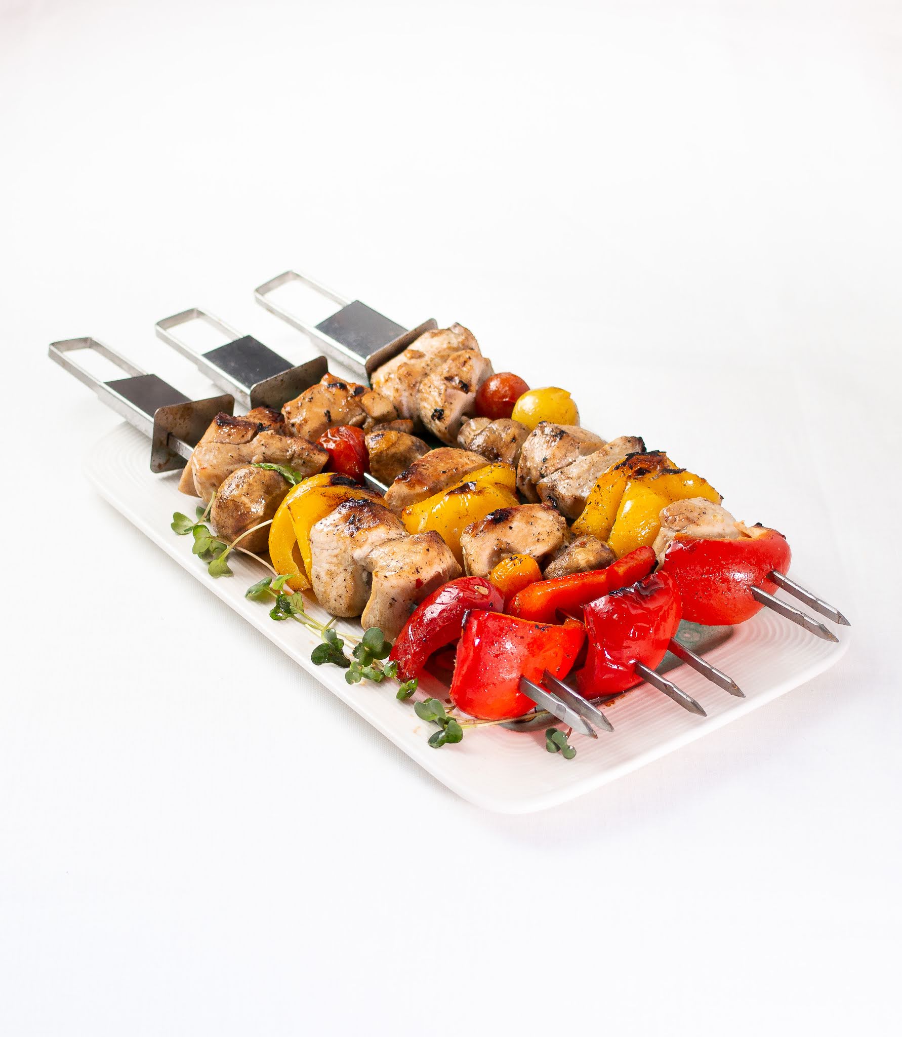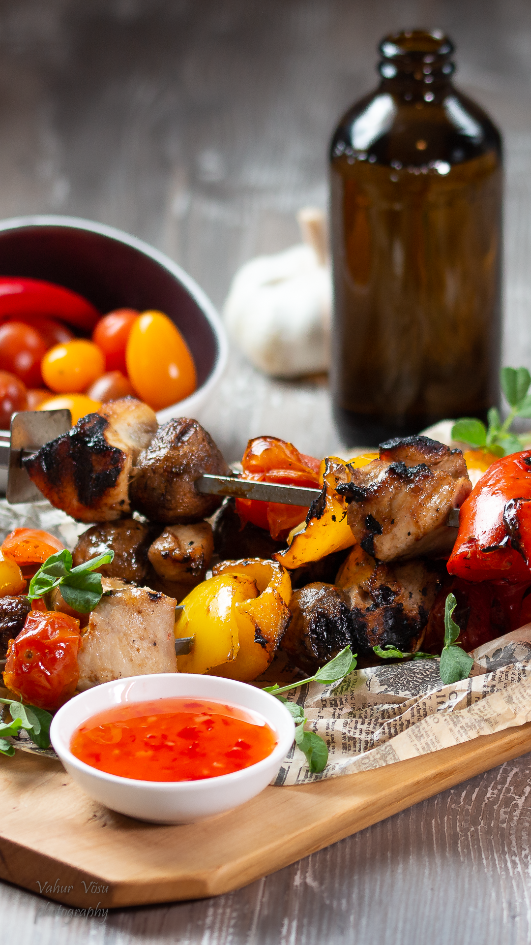 Mõnus värviline ning maitsev grilliroog. Magus-küüslauguses marinaadis kana ning värvilised köögiviljad on mõnusaks kergeks roaks imelisse suveõhtusse.