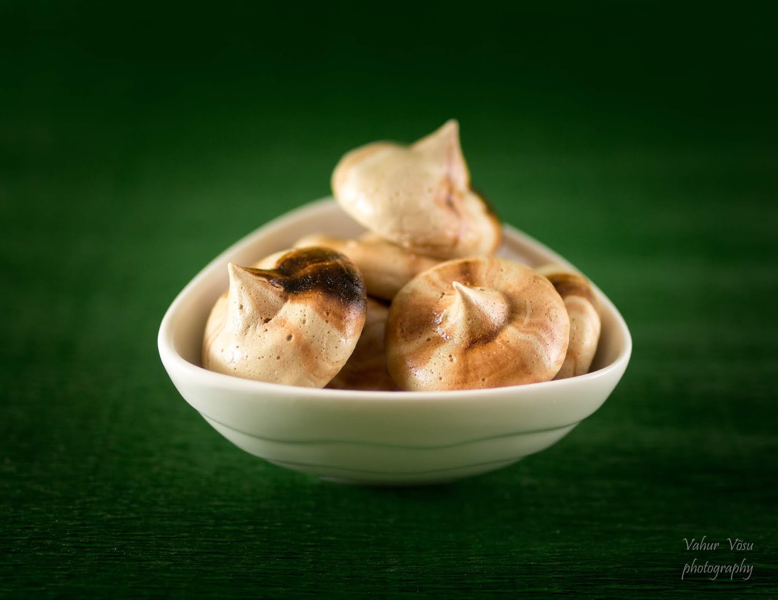 5. Pritsi küpsetuspaberile väikesed küpsised ja küpseta ahjus pöördõhuga 90 C juures ca 2 tundi. Küpsised on valmis kui need tulevad kergesti küpsetuspaberilt lahti.