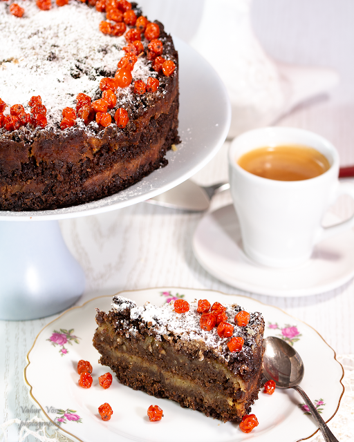 Serveerimise ajal puitsasin koogile tuhksuhkrut ja isetehtud suhkrustatud pihlakaid.