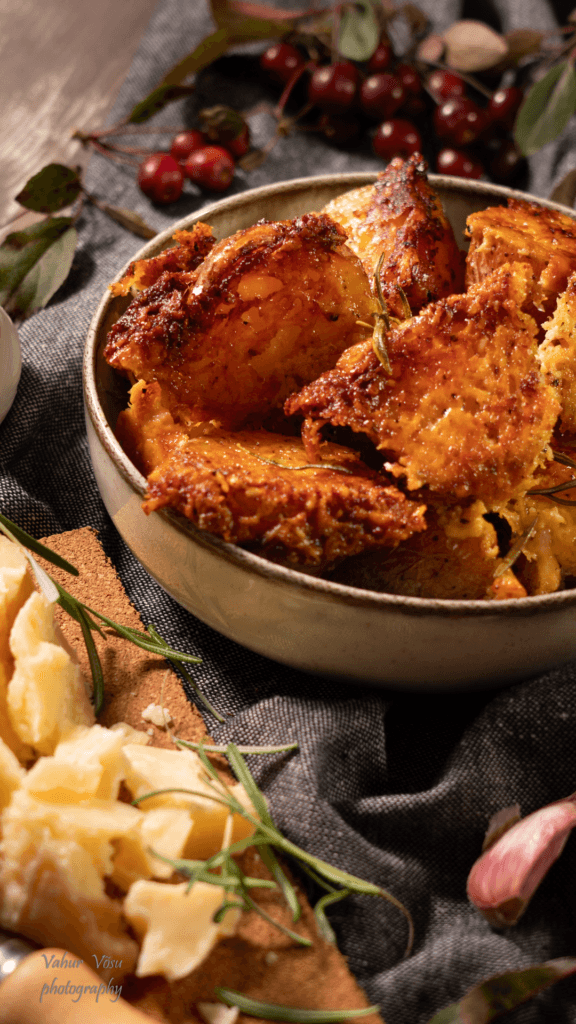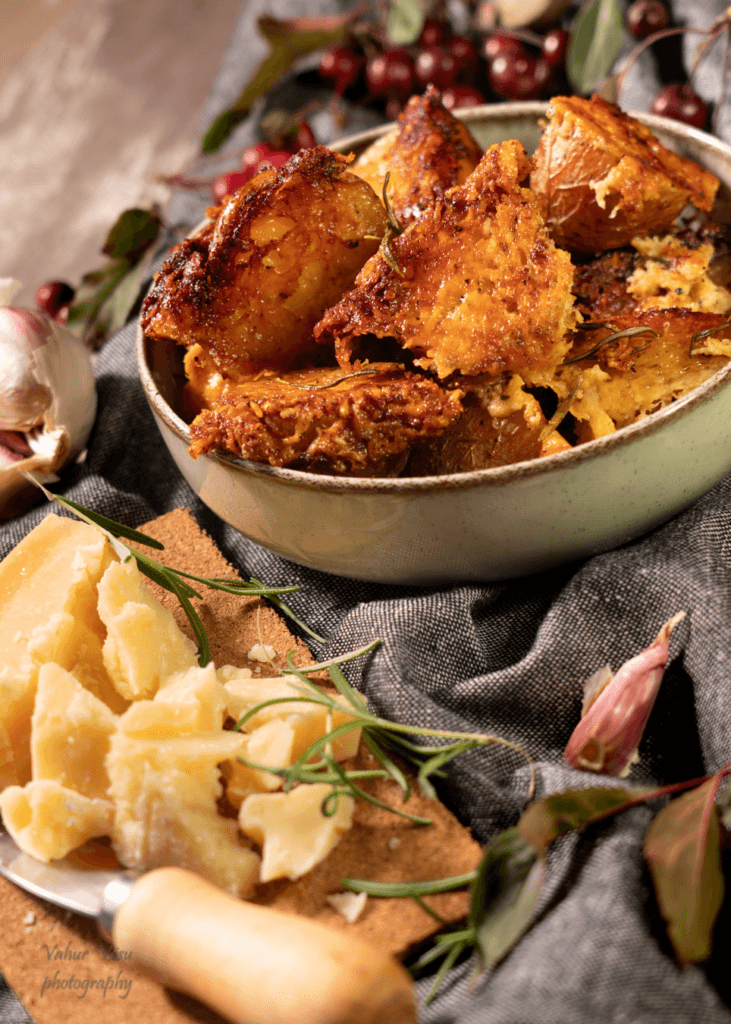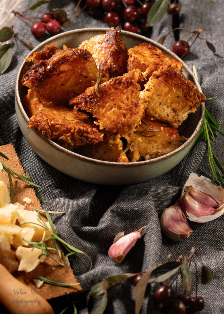 Nendele krõbedatele kartulitele ei suuda keegi vastu panna. Need on krõbedad ja juustused ning maitsevad ülihästi. Kõvajuust, või ja küüslauk kokku annavad mõnus maitsekoosluse.