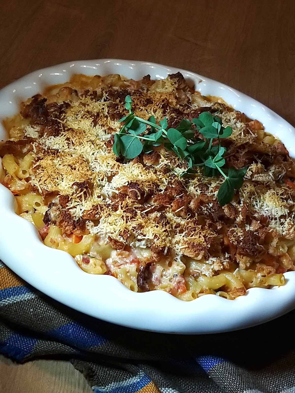 Õlita ahjuvorm ja lisa sinna saadud mass. Kata saiapuruga. Küpseta ahjus katmata ca 25 minutit või kuni vorm ilusalt kuldpruun.