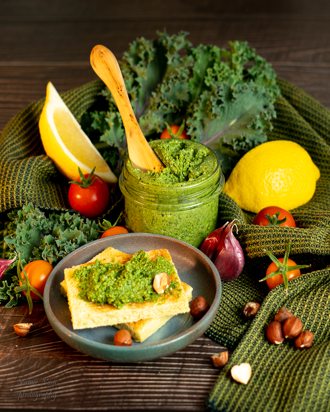 Pesto on mõnus ja suvine määre, mida saab teha peaaegu kõigest, mida aias leidub. Seekord  valmistasin pesto lehtkapsast.