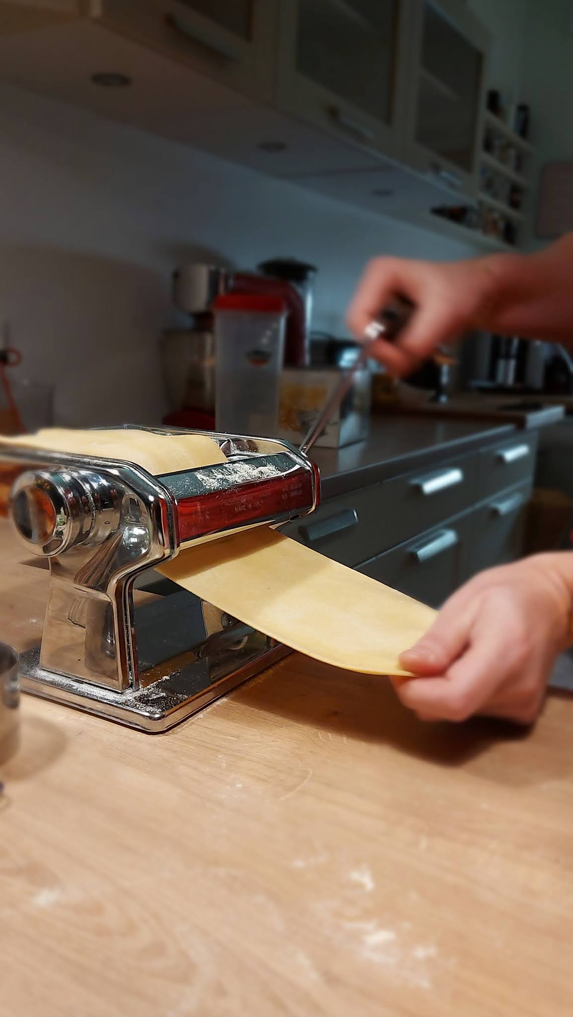 Segada köögikombainis taignaks 150g jahu ja 3 muna. Vajadusel lisa jahu. Sama tööoperatsiooni võib teha ka käsitsi.