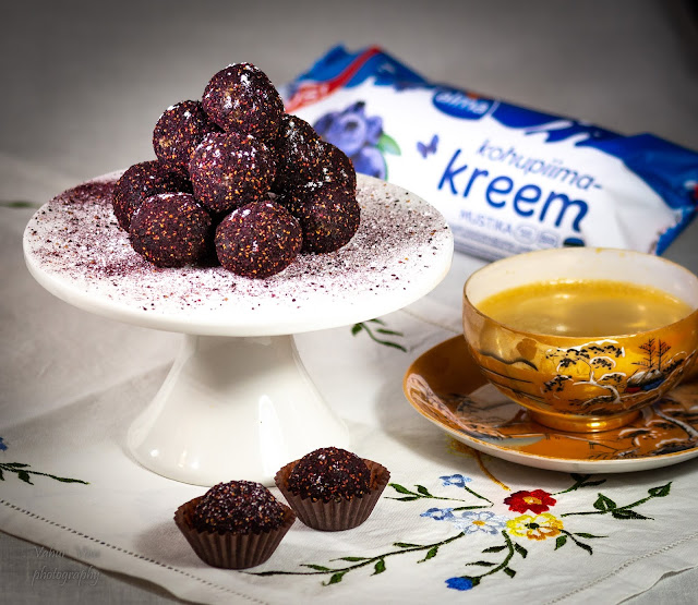 Veereta pallikesi mustikajahus ja aseta need paariks tunniks külmkappi jahtuma enne serveerimist.