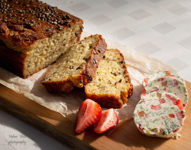 Vooderda leivavorm küpsetuspaberiga ja pane taigen vormi. Silu märja käega siledaks ja kaunista seemnetega. Pane vormi servadesse taigna ja küpsetuspaberi vahele pisikesed tükikesed võiga.