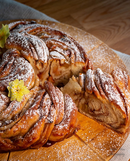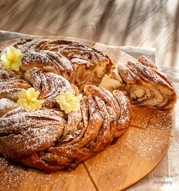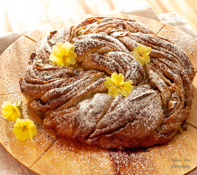 Keera need ribad üksteise ümber ja moodusta sellest põimitud ribast ring- nagu pildil ning aseta see küpsetuspaberile ning tõsta koos küpsetuspaberiga koogivormi (läbimõõt 26 cm).