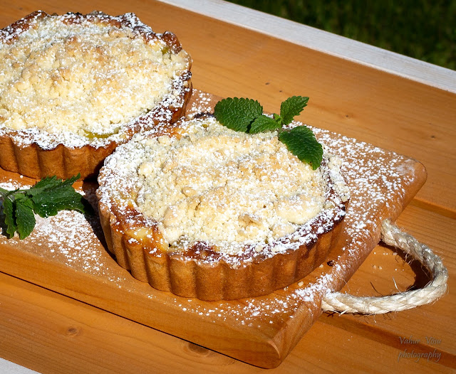 Küpseta ahjus 180 C juures ca 30 minutit. Lisa puru ja küpseta veel ca 15 minutit kuni tartlett on ilus ja pruunikas.