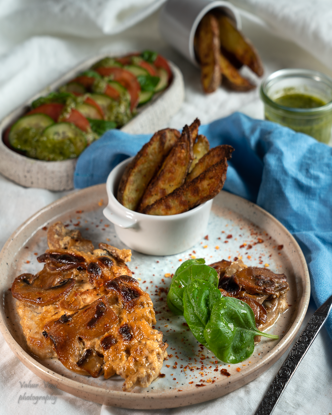 Koorene seavälisfilee seentega, mis sobib hästi serveerimiseks krõbedate ahjukartulitega.