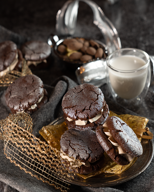 Pane saadud vahukommi segu pritskotti ja pritsi 24-le küpsisele rohkelt täidist. Kata teise küpsise poolega .