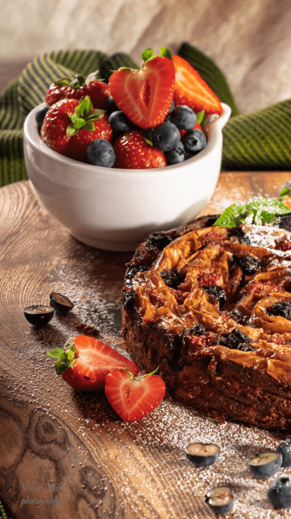 Küpseta vormi ahjus 30-40 minutit või kuni see on pealt kuldne. Võta vorm ahjust ja lase 10 minutit jahtuda. Eemalda kook vormist ja puista üle tuhksuhkruga.