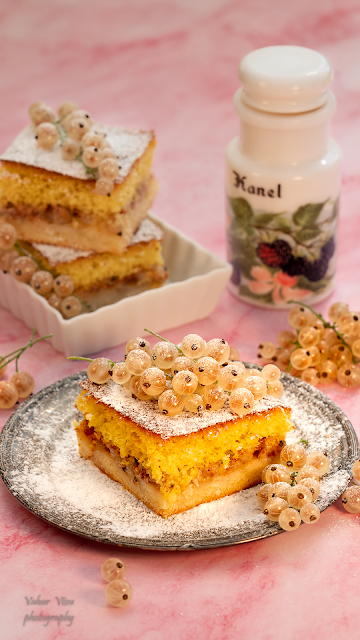 Klassikaline kook valgetest sõstardest muretaignapõhjal ja biskviitkattega.