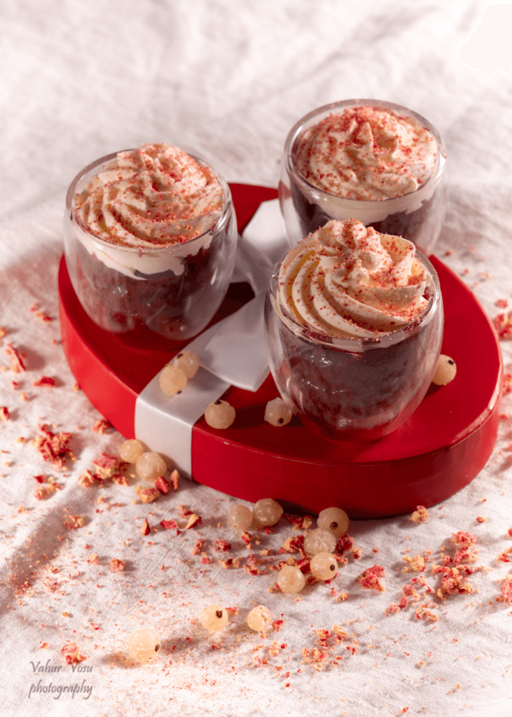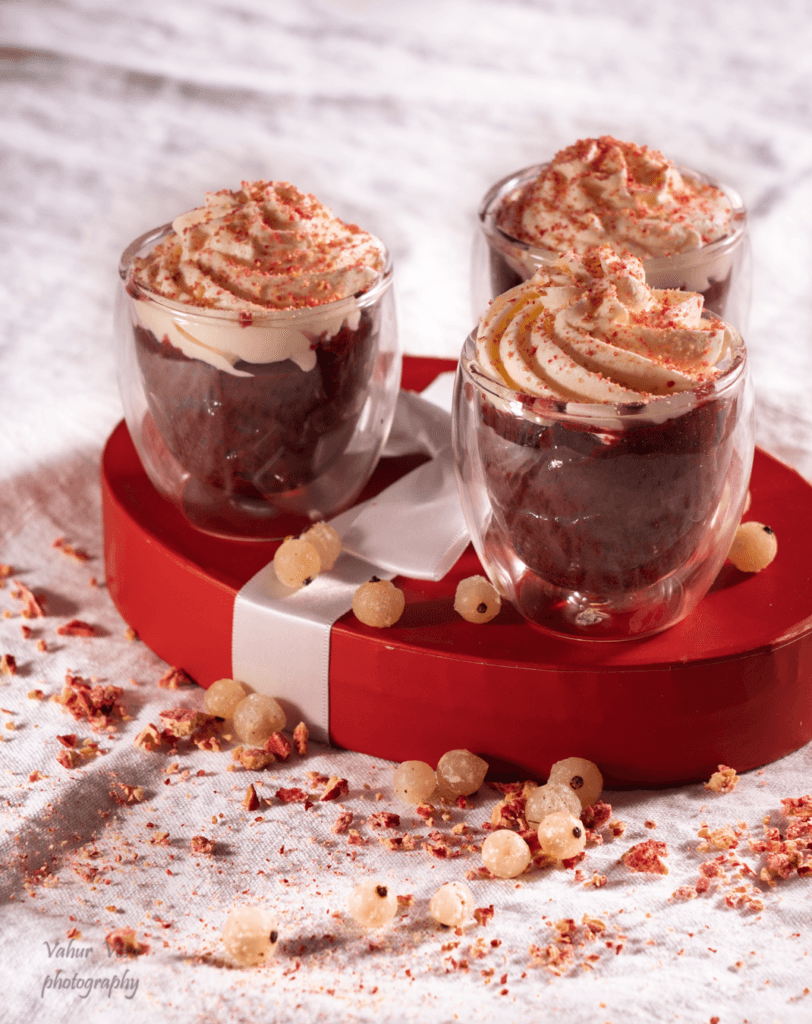 Pane kreem serveerimisnõudesse ning lisa vahukoor. Kaunista magustoit marjajahuga.