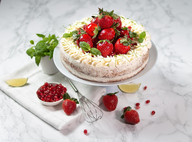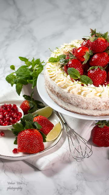 Suvine maasikatort kergelt pipramündise ja hapuka laimi maitsega.