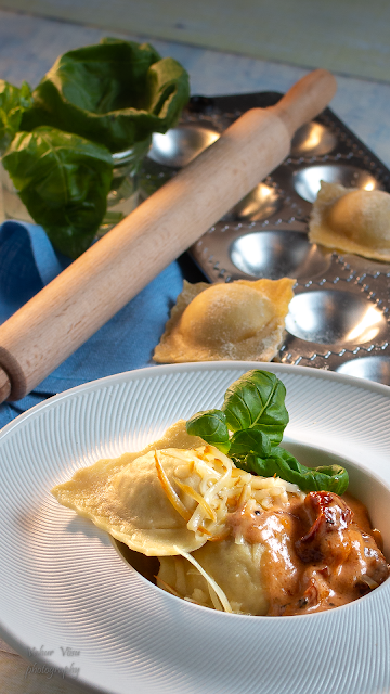 Väikesed ja mõnusad maitsekas ravioolid tummise tomati-rõõsa koore kastmega. Nende tegemine võtab küll pisut rohkem aega aga ajakulu on seda väärt.